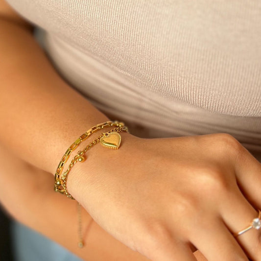 Golden Duo Heart Charm Bracelet - 18k Gold Plated