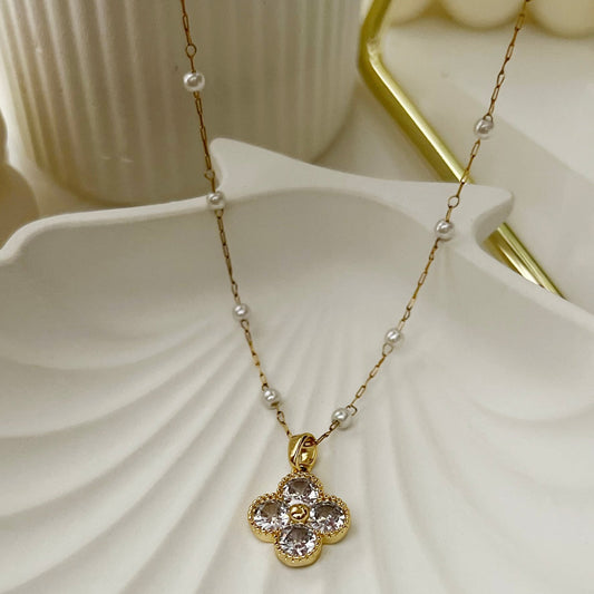 Statement Diamond Clover Necklace - 18k Gold Plated
