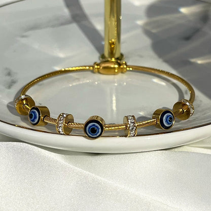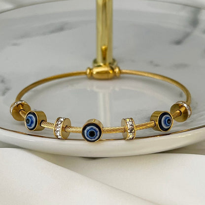 Stay stylish and protected with our Evil Eye Bangle. Featuring the iconic evil eye charm, this bracelet combines meaningful symbolism with a sleek design making it perfect for everyday wear.