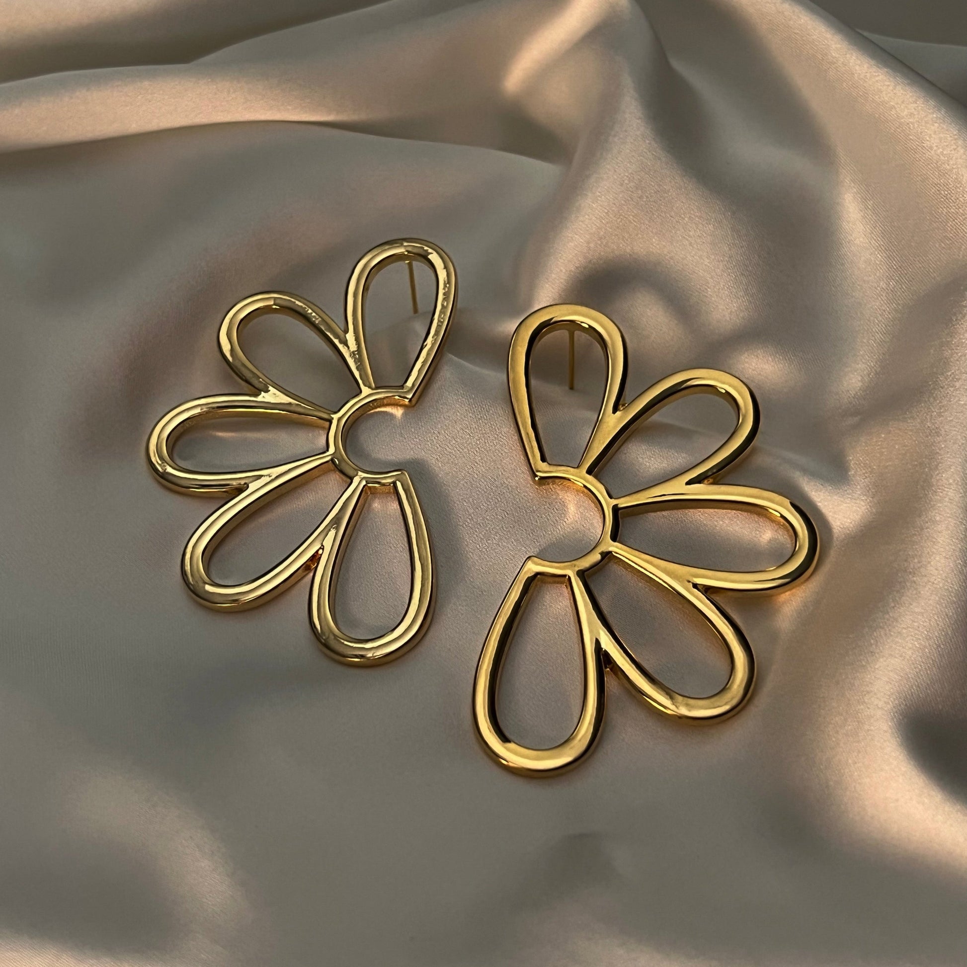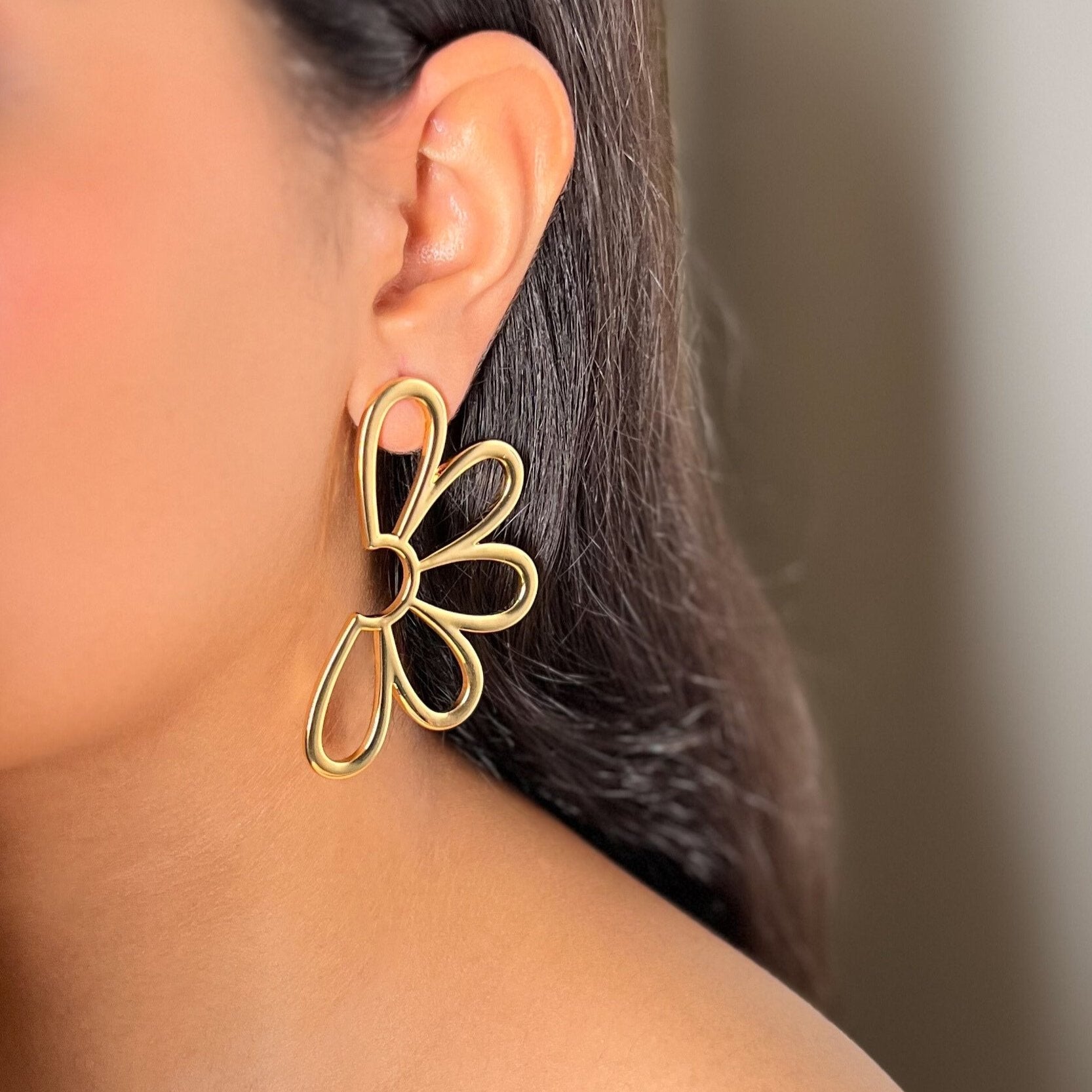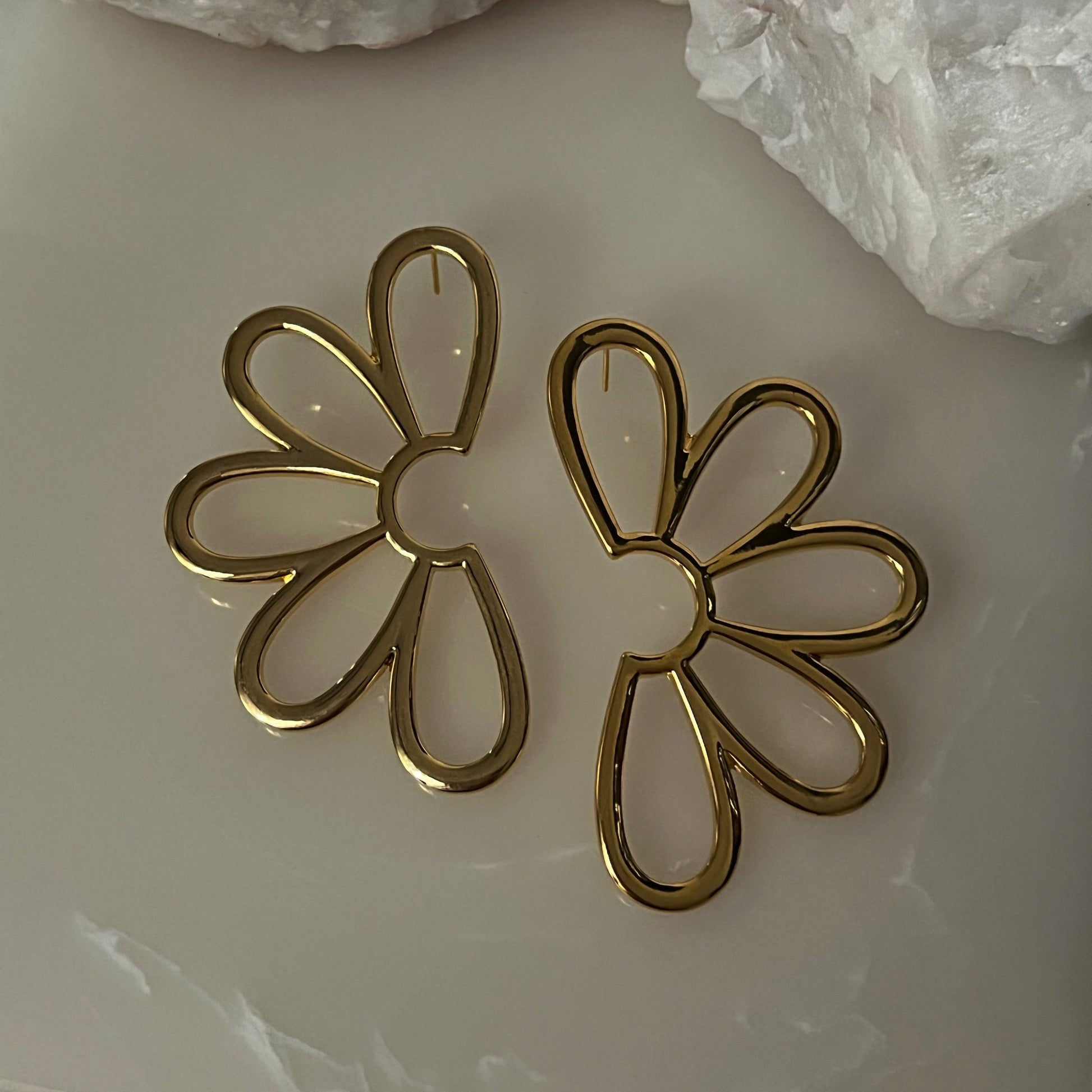 Make a stunning entrance with our 'Statement Half Flower Earrings', a dramatic and artistic addition to your jewellery collection. These earrings feature a large, bold half-flower design, perfect for those who love to make a statement with their accessories.